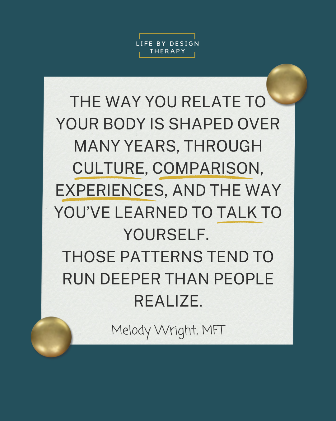 The way you relate to your body is shaped over many years, through culture, comparison, experiences, and the way you’ve learned to talk to yourself. Those patterns tend to run deeper than people realize.